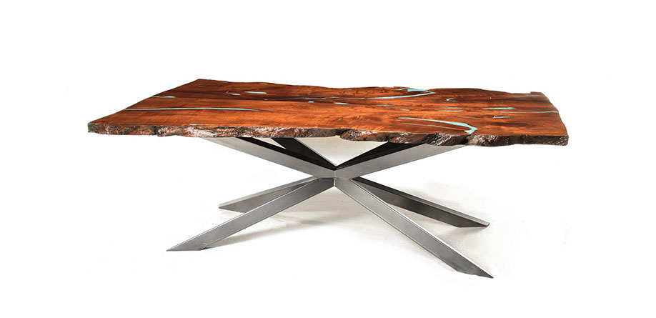 Una armoniosa mezcla de hierro forjado a mano, mezquite, madera, cuero y otros materiales finos.