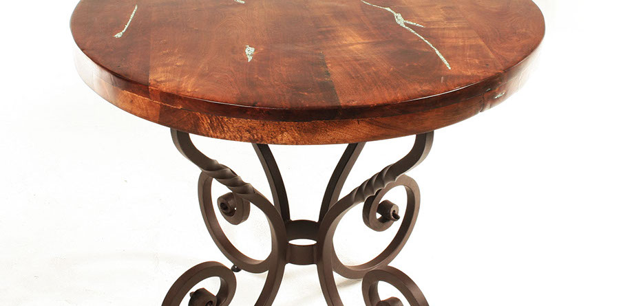 Una armoniosa mezcla de hierro forjado a mano, mezquite, madera, cuero y otros materiales finos.